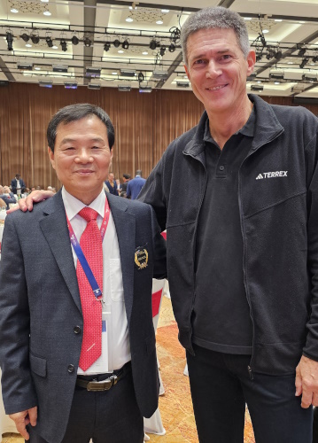 Jinbang Yang, ebenfalls neu gewählter WT-Vizepräsident, mit Markus Kohlöffel.